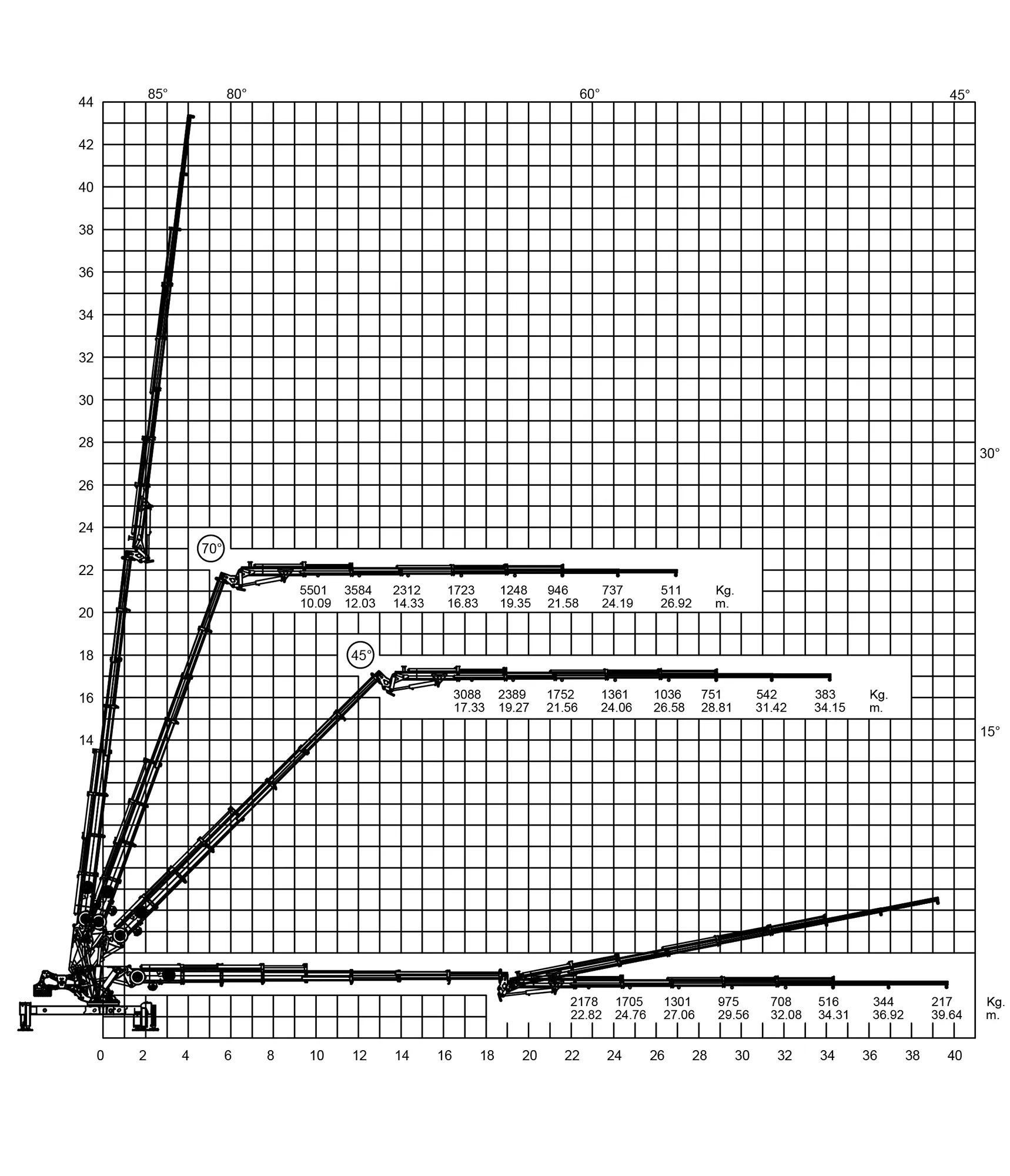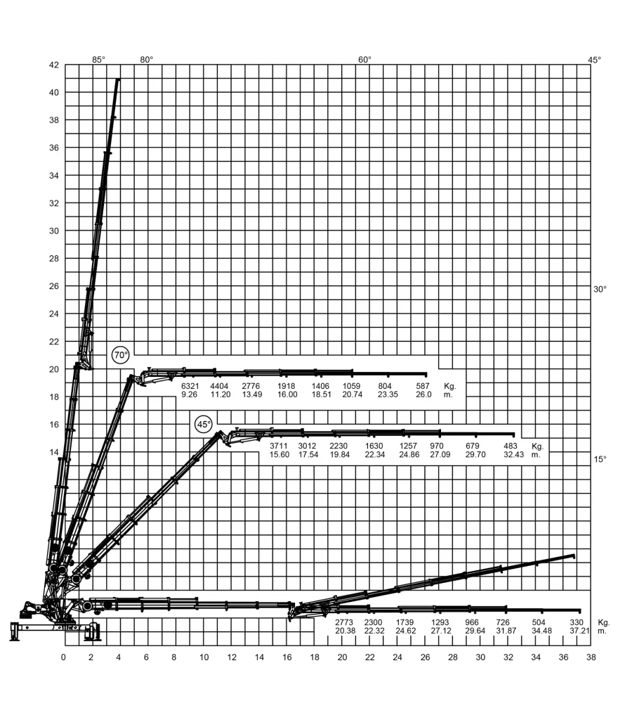 | Maximum Mechanical Horizontal Outreach | 21,05 | 23,56 | 37,21 | 39,64 |