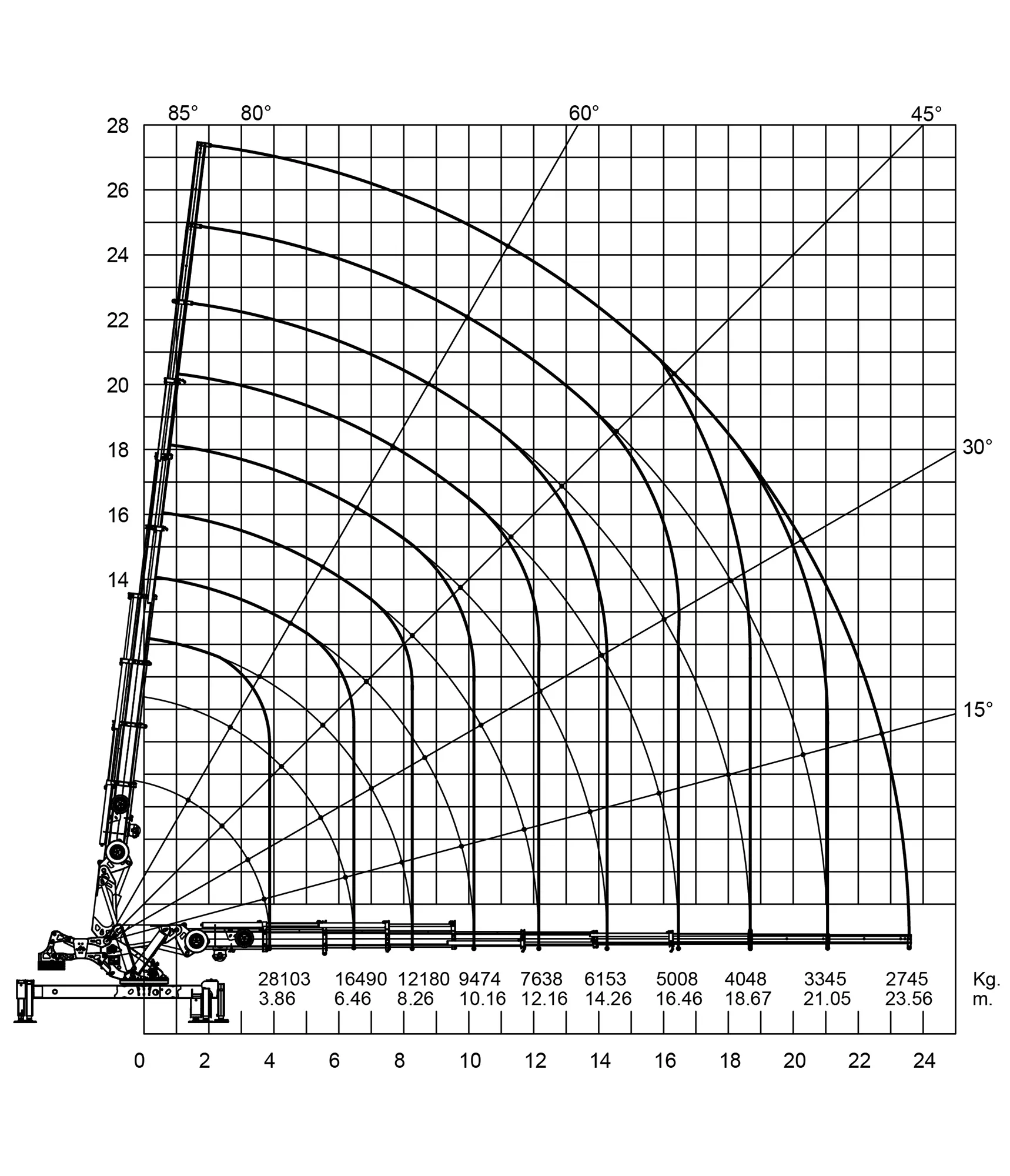 | Maximum Hydraulic Horizontal Outreach | 16,23 | 18,67 | 31,87 | 34,31 |
