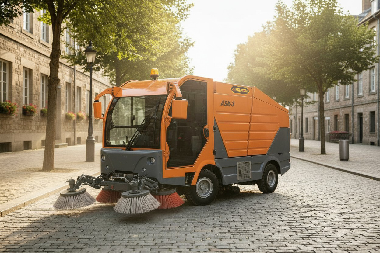 - Operatörün kabinden tek bir butonla istediği zaman hem 2 teker hem de 4 teker manevra yapabileceği dar alanlarda kendi etrafında kolayca döner, en zorlu köşe ve bölgelerde dahi zorluk çekmez ve tek seferde süpürme sağlar.
